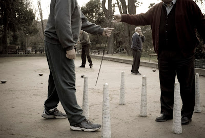 … ist ein uraltes Spiel aus der spanischen Provinz León, im Norden des Landes. Im Retiro, dem Stadtpark Madrids, trifft sich am Wochenende eine Gruppe von Männern, die das Spiel pflegen. Die Kegel sind aus Holz. Geworfen wird mit einer halben Holz- Kugel, die in großen Bögen über den Platz und durch die Reihen der großen Kegel rollen. Das Ziel ist es den kleinen Kegel der daneben aufgestellt wird, umzuschmeißen. Wer große Kegel trifft, bekommt ebenfalls Punkte, wenn auch weniger.