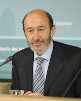 Sollte Rubalcaba tatsächlich zum Nachfolgekandidaten Zapateros ernannt werden, hat er es nicht leicht. Die konservative Partido Popular hatt derzeit 13 Punkte Vorsprung. Und parteiintern hat Rubalcaba im Herbst eine emblematische Schlacht verloren. Er wollte den Madrider Parteichef Tomás Gómez in Urwahlen stürzen, indem er eine enge Vertraute, die damalige Gesundheits- und jetzige Aussenministerin, gegen ihn ins Rennen schickte. Der junge Gómez gewann und erlaubt es sich seither das sozial unausgewogene Sparprogramm der Präsidenten Zapatero und Rubalcaba scharf zu kritisieren./ Foto: Ministerio del Interior