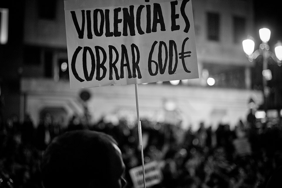 Vor dem Parlament in Madrid, gegen die Arbeitsmarktreform und die Aufhebung der Branchentarifverträge zugunsten von betrieblichen Abkommen.
