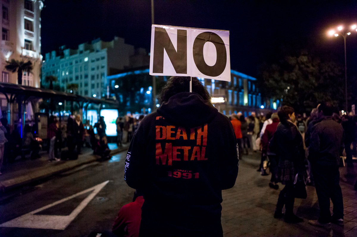 Während der Plenarsitzung war das Parlament in der Madrider Innenstadt weiträumig von 1.500 Polizisten abgeriegelt. Die Proteste ließen nicht auf sich warten. In der Nacht von Dienstag auf Mittwoch forderten Tausende Demonstranten den Rücktritt der Regierung. In einer großen Versammlung vor dem Absperrgitter der Polizei wurden Vorschläge für einen sozialeren Haushalt sowie Ideen für eine neue Verfassung diskutiert. Anders als bei ähnlichen Aktionen in der Vergangenheit versuchte die Polizei nicht, die Demonstration aufzulösen. Am Samstag soll das Parlament erneut umzingelt werden und für den 14. November rufen die Gewrkschaften zu einem Generalstreik.