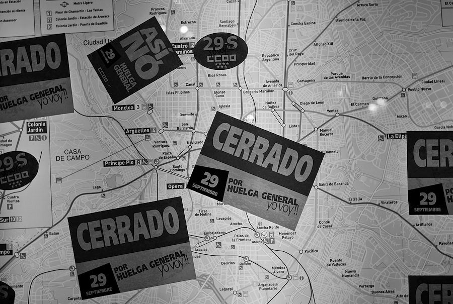Die Industrie wird im ganzen Land komplett bestreikt. Bei vielen großen Kaufhäusern bleiben die Läden unten. Geschäfte und Kneipen sind geschlossen. Es gibt kaum Flüge in Barcelona und Madrid. Mehrere Großmärkte haben die Auslieferung eingestellt. In Madrid fahren so gut wie keine Busse, der Müll wird nicht abgeholt. Der Stromverbrauch ist so niedrig, als wäre das halbe Land in Urlaub.